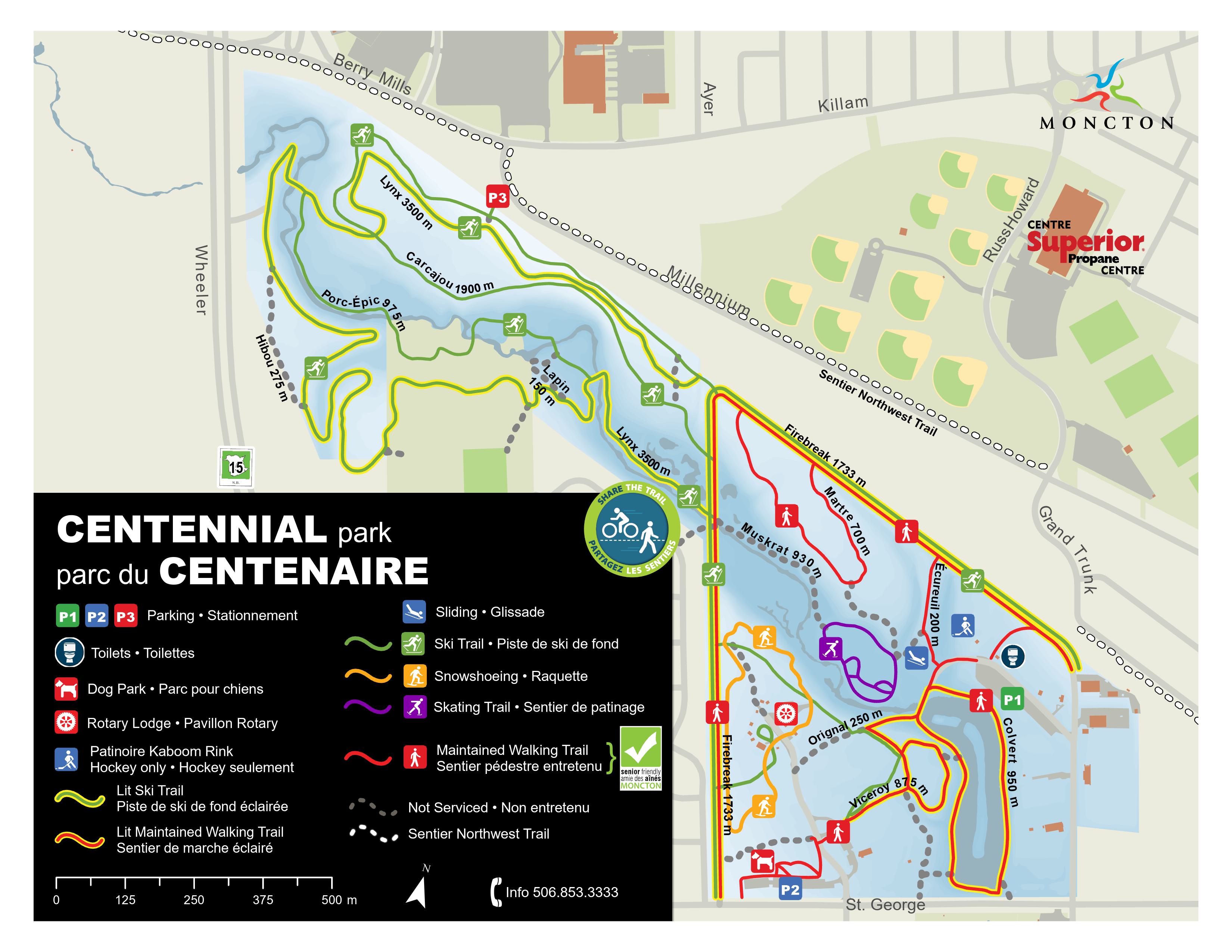 Below is a park map for Centennial Park showing all the trails. We will be primarily using Firebreak and Lynx for our 2 loop bike route. More detailed maps will be provided when the snow melts.